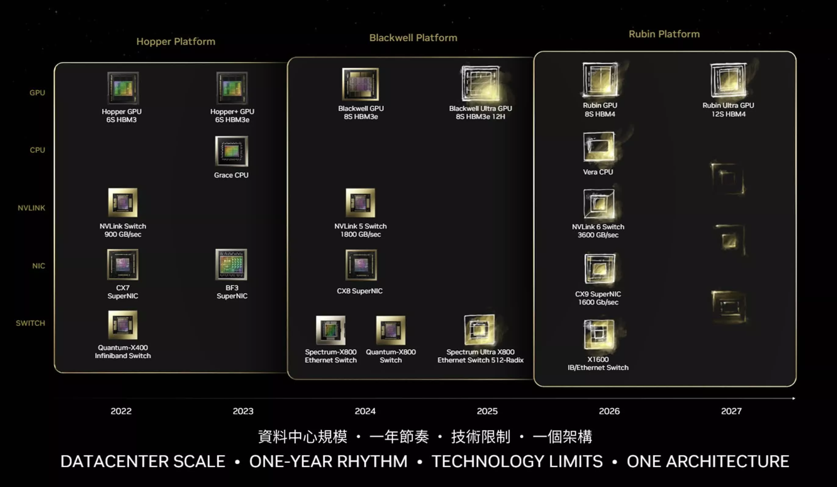 En regardant au-delà de Blackwell, NVIDIA travaille déjà sur son architecture de prochaine génération, codée Vera Rubin. Prévue pour 2026, les GPU Rubin représentent une avancée significative vers l’obtention de l’intelligence artificielle générale (AGI).