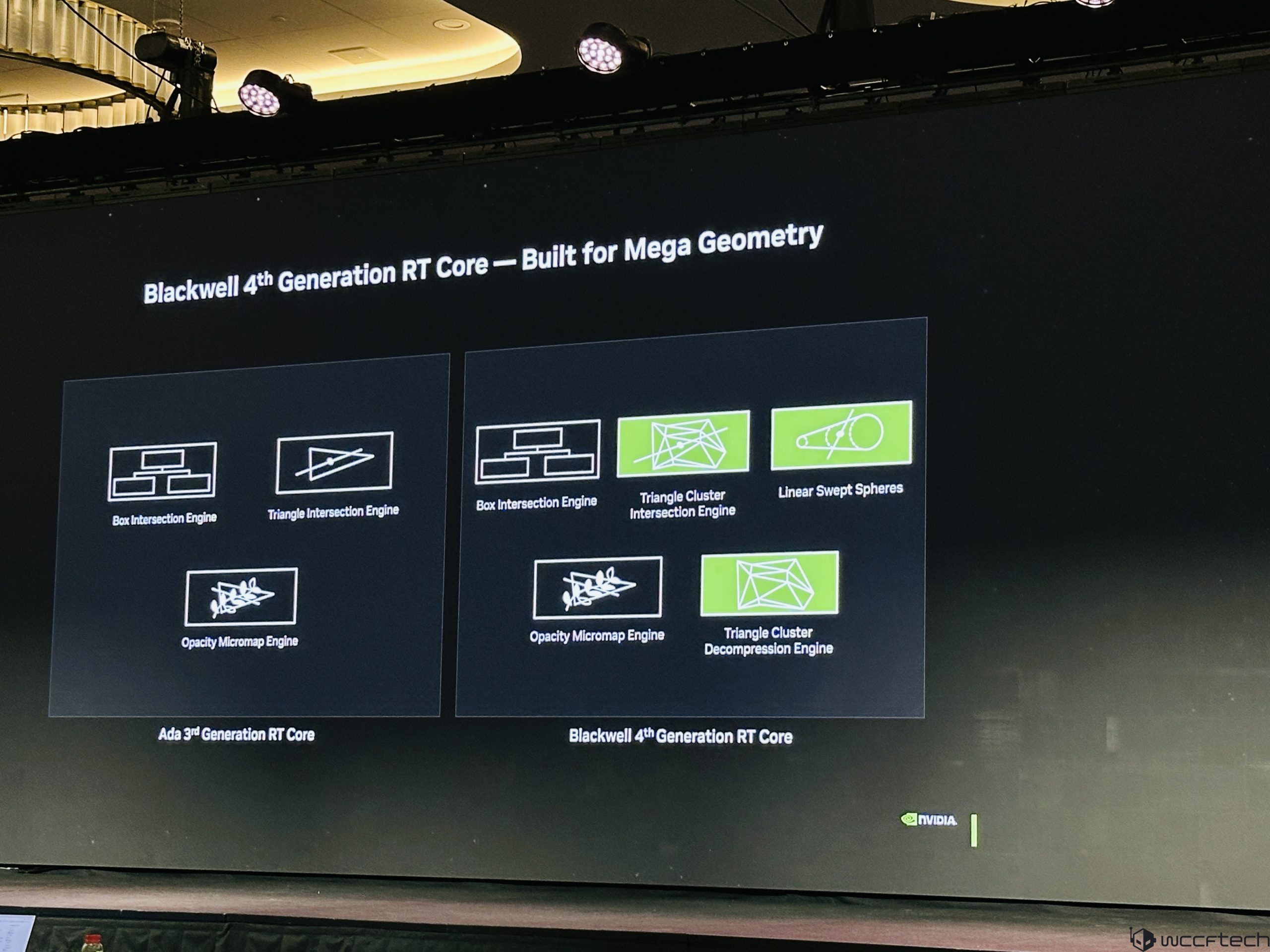 Les améliorations apportées par les nouveaux cœurs RT incluent une efficacité accrue lors du rendus d’éléments complexes, grâce à un moteur d’intersection de clusters de triangles. Cela permet de gérer la géométrie hiérarchique de manière plus efficace que les modèles précédents.