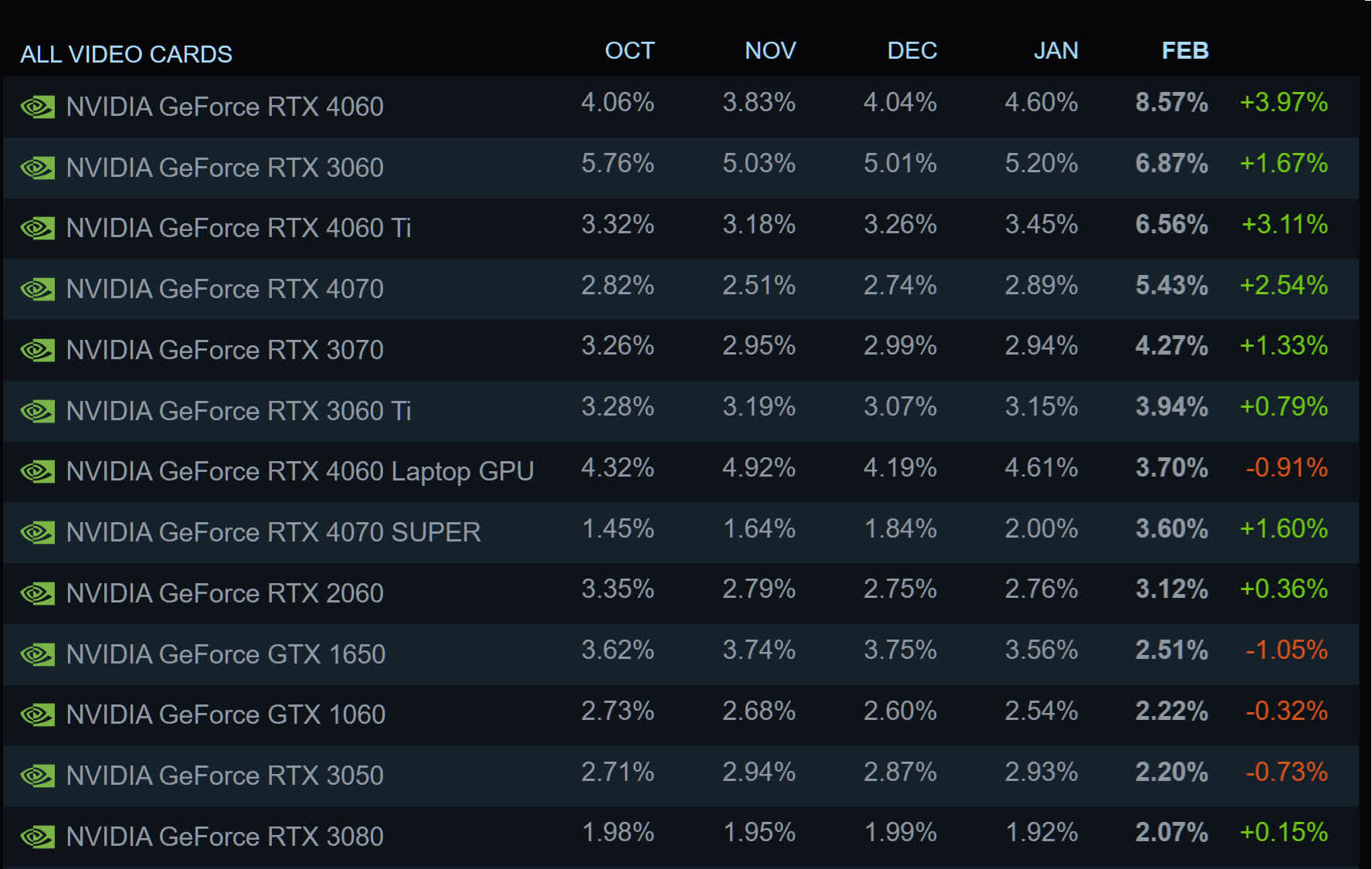 La série xx60 d’NVIDIA est depuis longtemps une favorite parmi les joueurs grand public : la RTX 3060 a récemment perdu sa position longtemps tenue en haut du sondage Steam face à la RTX 4060, et la RTX 4060 Ti se classe au troisième rang. Même la RTX 2060 reste dans le top dix. Nous devrons attendre pour voir si la RTX 5060 (finalement) s’avèrera aussi populaire.