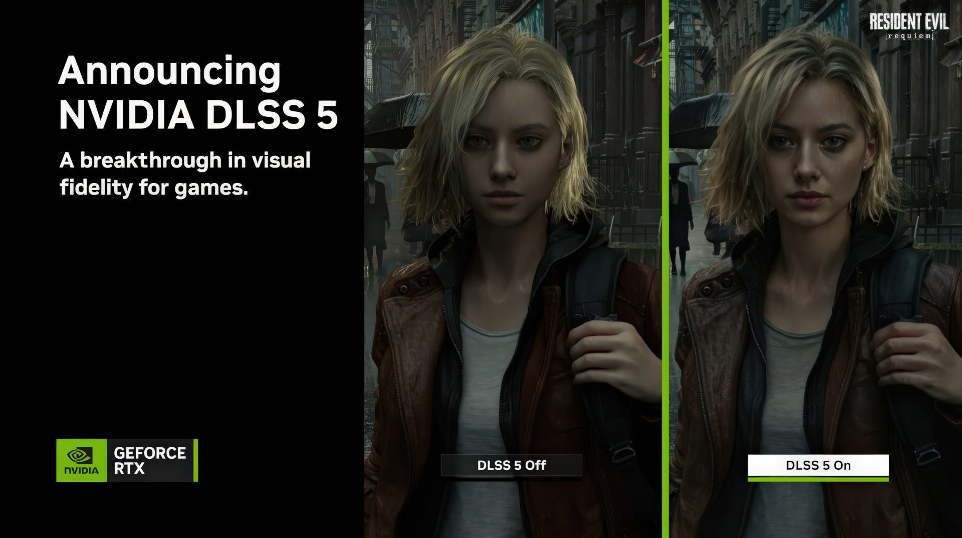 Il est surprenant de voir comment une seule capture d’écran a détourné toute la conversation autour du DLSS 5. En effet, il s’agit de la comparaison d’Resident Evil Requiem montrant le co-protagoniste Grace Ashcroft. NVIDIA a choisi cette image comme illustration de l’énorme saut visuel qu’apporte cette nouvelle technologie, jusqu’à en faire l’image vedette de l’annonce officielle.
