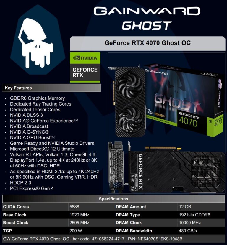RTX 4070 GDDR6, Source : PALIT/GAINWARD