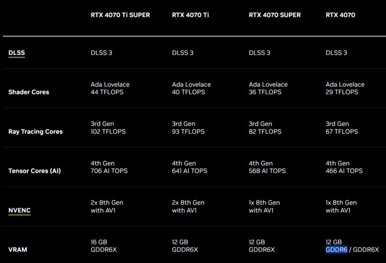 RTX 4070 GDDR6, Source : NVIDIA