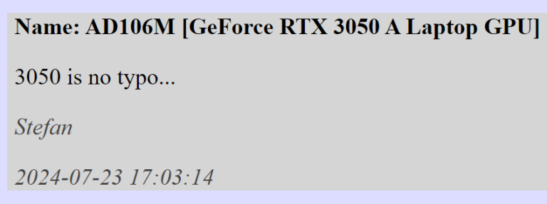 RTX 3050 A avec GPU AD106, Source : PCI-ID