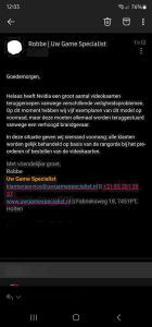 Le courriel du site de ventes, traduit du néerlandais, précisait : « NVIDIA a rappelé un grand nombre de cartes graphiques à cause de divers problèmes de sécurité. Nous avons actuellement cinq unités de ce modèle en stock, mais elles doivent toutes être retournées en raison d’un risque d’incendie accru. Aucun client ne sera priorisé ; tous seront traités de manière égale, quel que soit l’ordre de leur commande ».