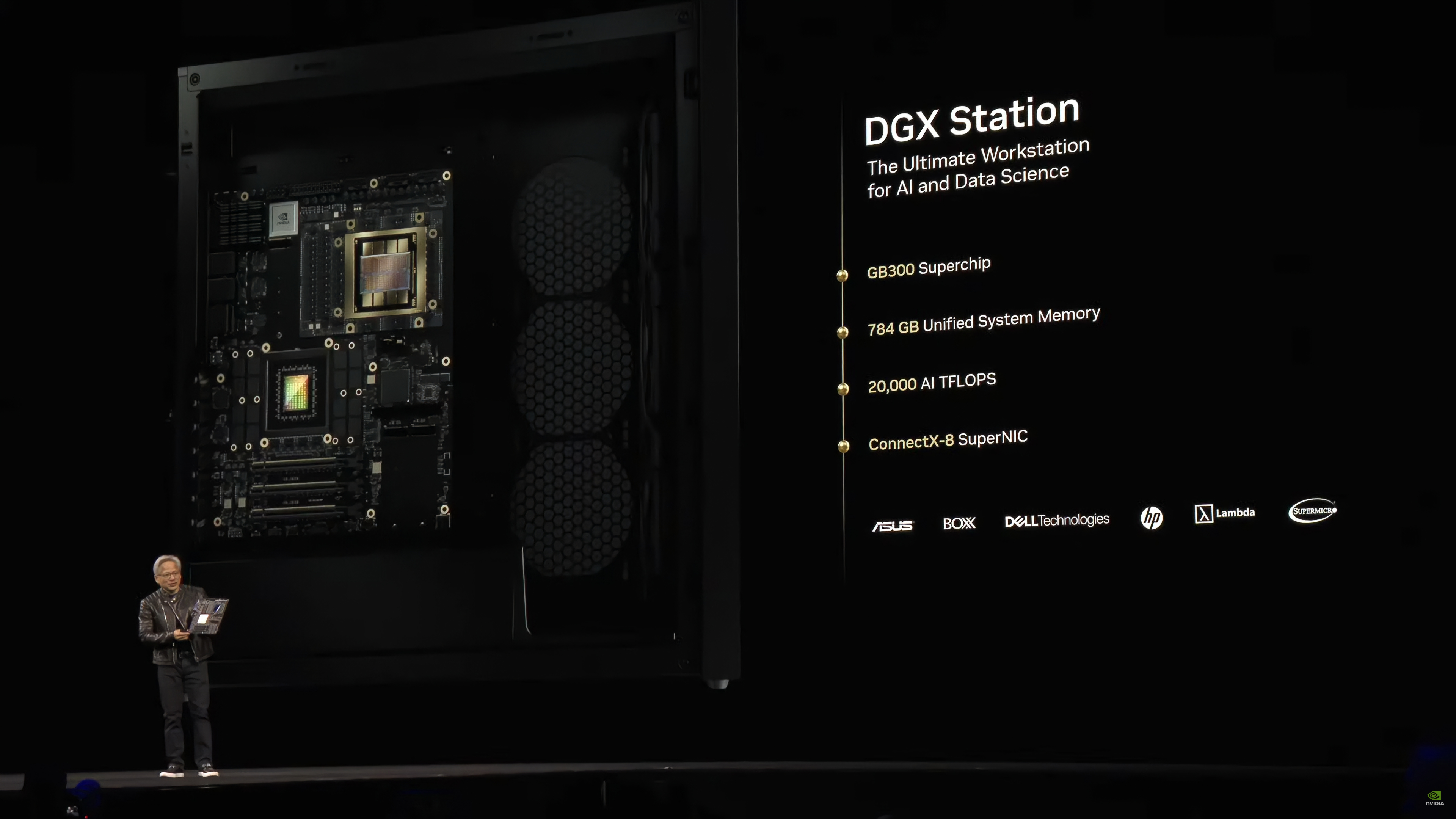 On attend la disponibilité de DGX Station chez des partenaires de fabrication tels qu’ASUS, BOXX, Dell, HP, Lambda et Supermicro plus tard cette année.