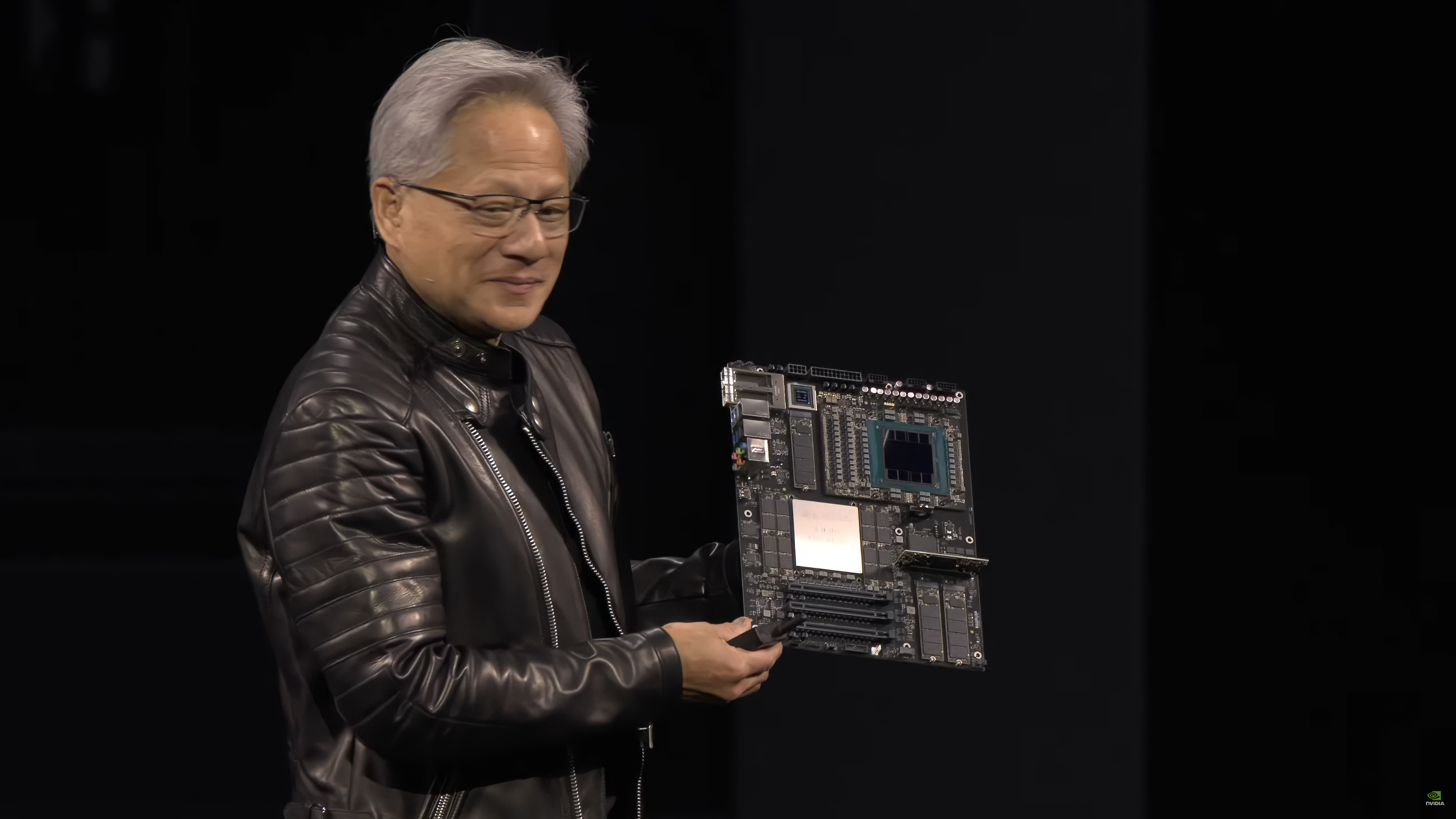 Note de l’éditeur : Le PDG de NVIDIA, Jensen Huang, a présenté une carte mère intégrée aux systèmes DGX Spark/Station, équipée d’une carte Blackwell SXM avec deux puces et 8 sites HBM3e.
