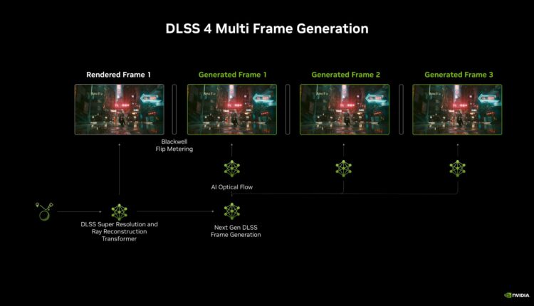 Avec le lancement de la série RTX 5000, NVIDIA a introduit le DLSS 4, apportant des améliorations majeures pour offrir un gameplay fluide. La méthode classique de génération d’images du DLSS 3 est désormais remplacée par cette nouvelle technique pouvant potentiellement générer jusqu’à 16 fps, selon les capacités d’IA au fil du temps.