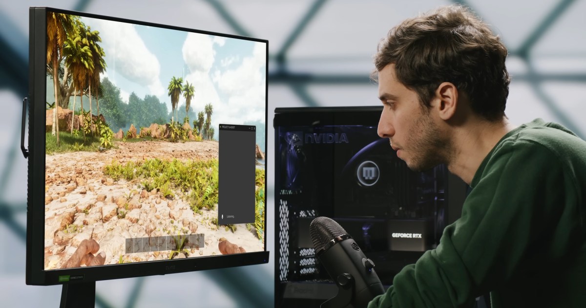 NVIDIA affirme que G-Assist a accès à tout ce qui se trouve normalement dans l’Overlay NVIDIA, ce qui vous permet de commencer et d’arrêter des enregistrements, d’overclocker ou de réduire la tension de votre GPU automatiquement, de mettre à jour vos pilotes, et bien plus encore. Vous n’avez pas non plus besoin de taper toutes vos requêtes. G-Assist fonctionne avec du texte ou de la voix, selon NVIDIA, et sera disponible pour toutes les cartes graphiques RTX. De plus, NVIDIA précise que G-Assist fonctionne intégralement sur l’appareil ; il ne se connecte pas à Internet.