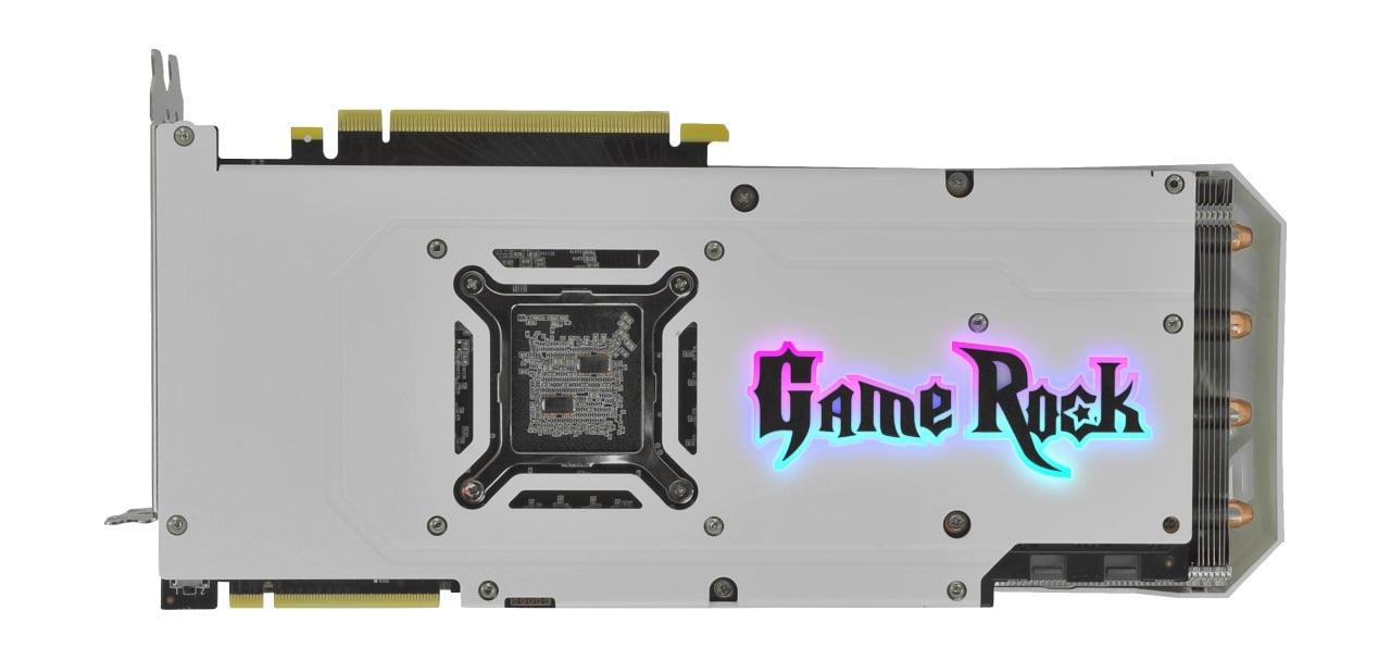 La GeForce RTX 2080 Super WGRP dispose de LED RVB, à la fois sur le carénage et sur la plaque arrière. Le logo Game Rock s’allume également sur le côté contrairement aux ventilateurs dénués d’éclairage.