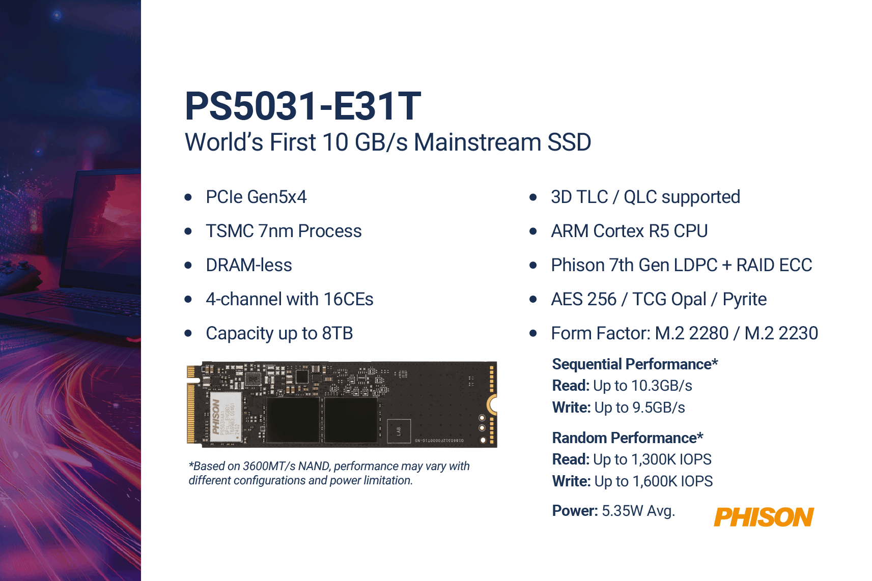 - Contrôleur SSD PCIe Gen5 PS5031-E31T