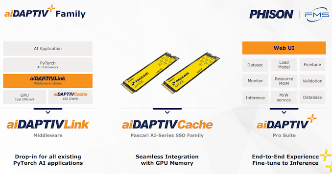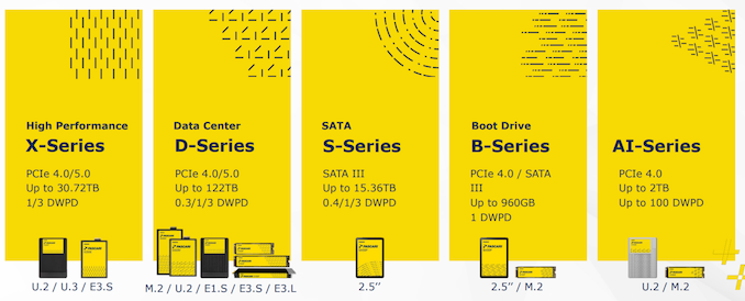 Avec la marque Pascari, Phison a lancé différentes gammes visant des cas d’utilisation variés : des disques d’entreprise haute performance dans la série X aux disques de démarrage dans la série B. La série AI propose des déclinaisons supportant jusqu’à 100 DWPD (plus de détails dans la sous-section aiDAPTIVE+ ci-dessous).