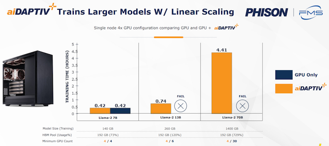 La réformation de modèles en utilisant ces SSD AI comme extension de la VRAM des GPU peut offrir d’importants avantages en termes de coût total de possession pour ces entreprises, car les coûteuses GPU spécifiques à la formation AI peuvent être remplacées par un ensemble de GPU RTX relativement peu onéreux. Ce middleware est lié à l’achat des SSD de la série AI (qui possèdent actuellement des interfaces Gen 4 x4 en formats U.2 ou M.2). L’utilisation de SSD comme couche de cache peut permettre un ajustement de modèles avec un très grand nombre de paramètres en utilisant un nombre minimal de GPU (sans avoir à les utiliser principalement pour leur capacité HBM).