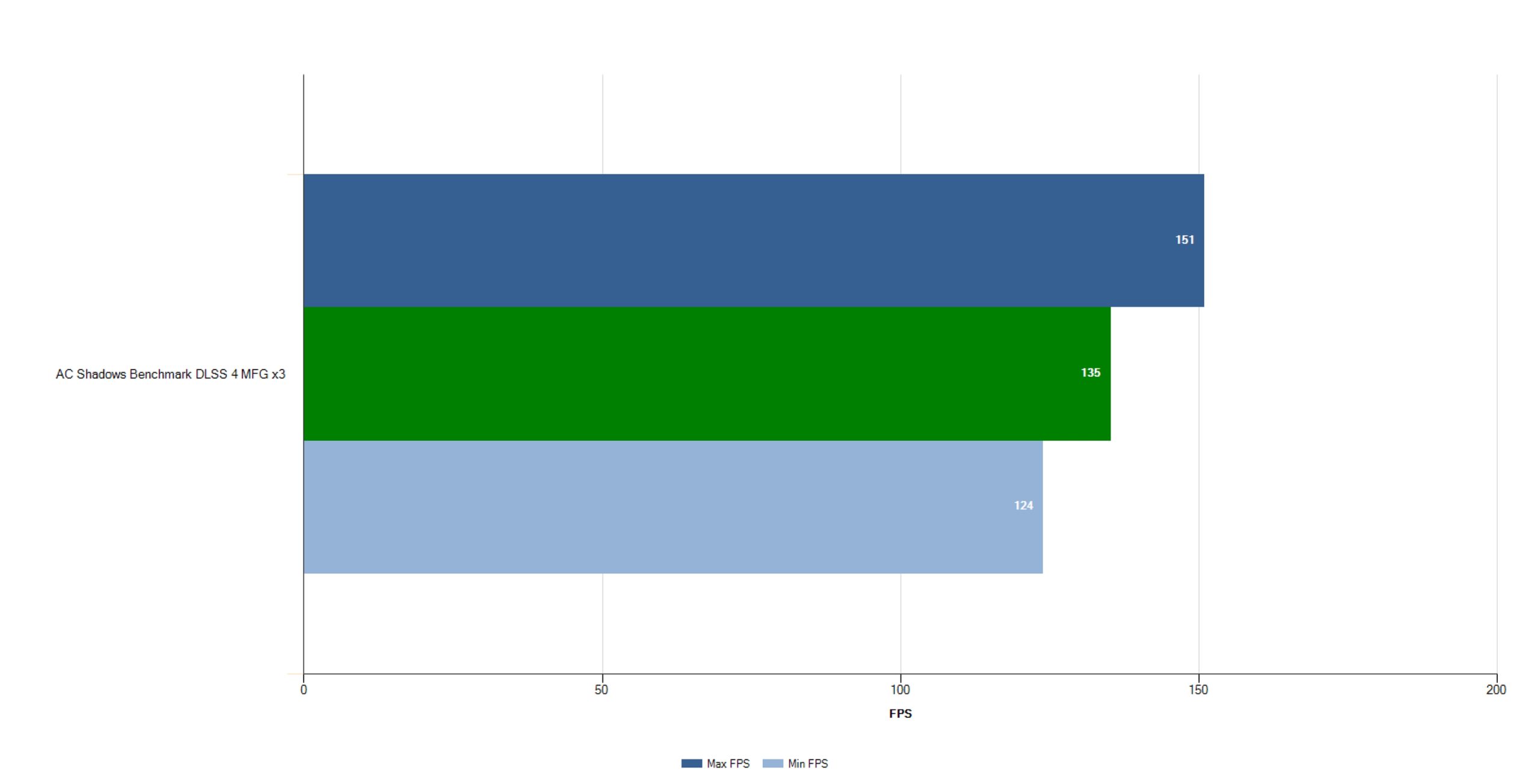 Avec le mode 4x activé, le benchmark indique une moyenne de 173 FPS, mais il est bon de noter que le jeu pourrait enregistrer des résultats inférieurs. Le mode Multi Frame Generation x3 donne un taux de 135 FPS, toujours bien au-dessus du mode 2x à 97 FPS. Ces performances témoignent de l’excellent travail des développeurs et de la stabilité du gameplay.