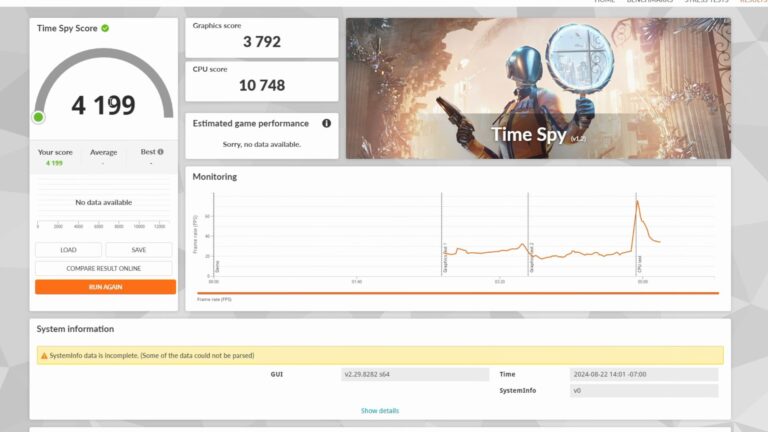 Après avoir confirmé les caractéristiques, ETA a montré que le PC fonctionne avec un TDP maximal de 65W et a commencé immédiatement les tests de la machine dans 3DMark.