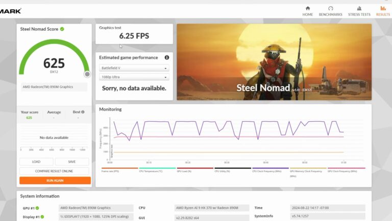- Steel Nomad: 625