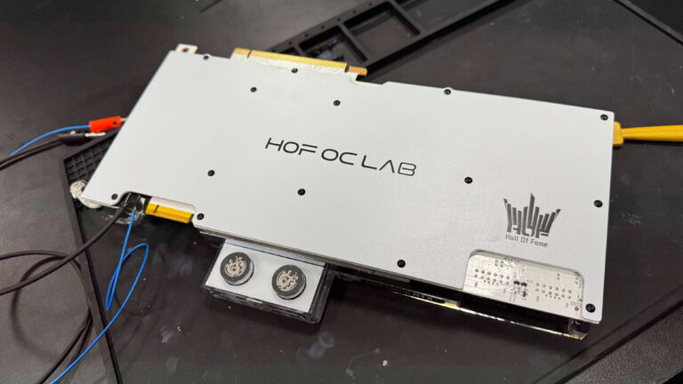 La principale amélioration concerne la mémoire, empruntée à la RTX 4080 SUPER, actuellement le seul modèle expédié avec une vitesse de 23 Gbps en sortie d’usine. De plus, l’équipe a utilisé le PCB RTX 3090 Ti GALAX HOF (Hall of Fame), connu pour sa puissante section GPU et, plus important encore, pour sa marge d’overclocking.