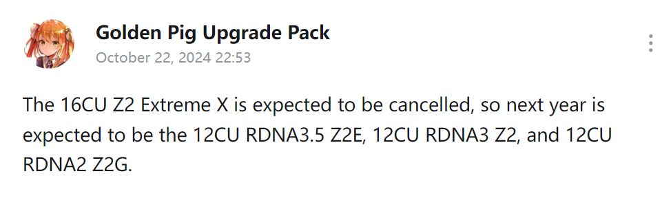 AMD semble s’apprêter à lancer une série d’APU Ryzen de nouvelle génération pour les consoles portables. La série Z2 comportera au moins trois déclinaisons : le Z2 Extreme, le modèle standard Z2 et le Z2G. Ces modèles ont été mis en lumière grâce à une fuite provenant de Golden Pig Upgrade sur la plateforme Bilibili.