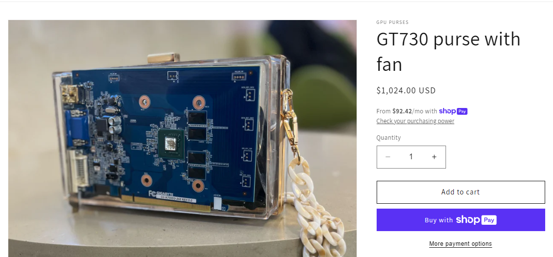 Il ne s’agit pas d’un phénomène courant de croiser des produits aussi originaux sur le marché, mais le secteur des GPU semble avoir une inspiration étonnante pour les créations DIY. GPU Purses a choisi un modèle d’affaires pour le moins discutable, utilisant un GPU complet pour façonner des sacs à main. Leur choix, un GeForce GT 730, laisse perplexe, tant sur le plan esthétique que sur le prix demandé.