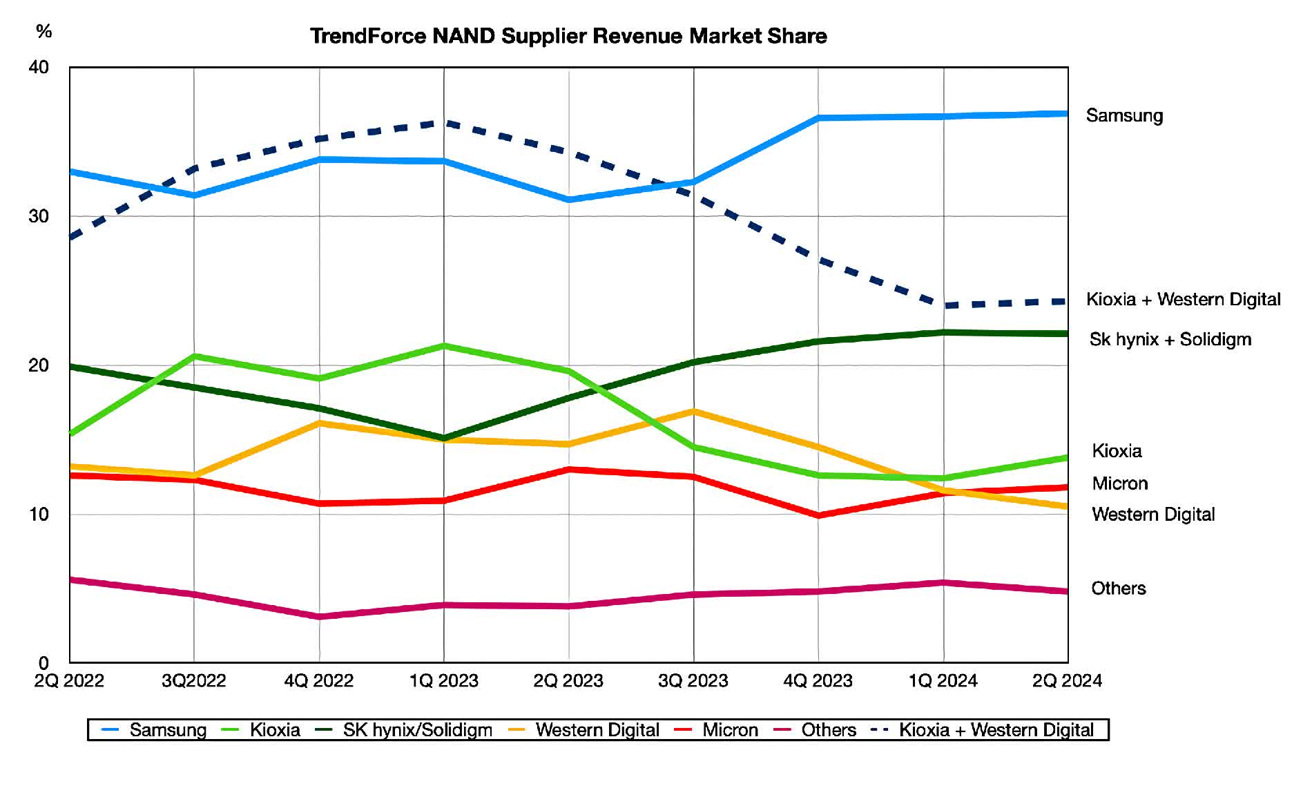 À l’heure actuelle, Samsung détient une part de marché de 37%, mais maintenir cette position devient de plus en plus difficile alors que des concurrents comme Micron, YMTC, SK Hynix, et Kioxia accélèrent leur développement de NAND 3D à plus haute densité.