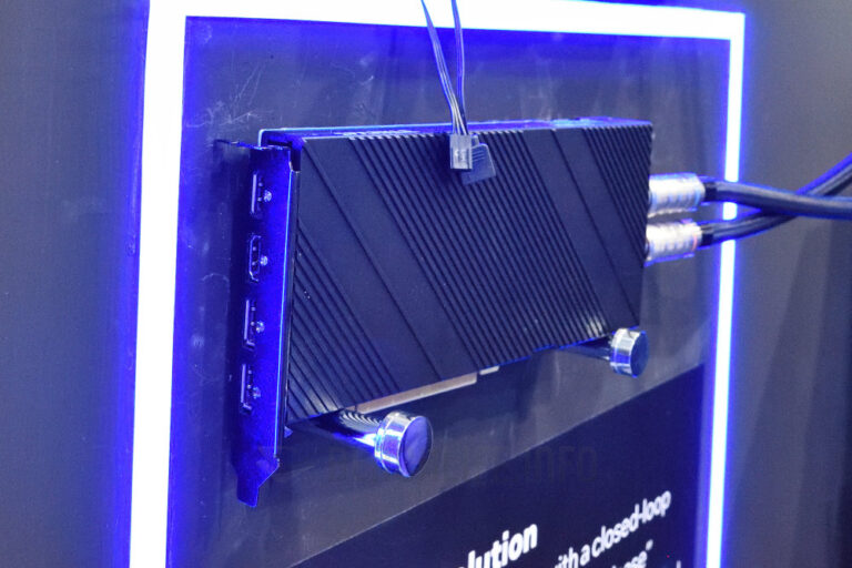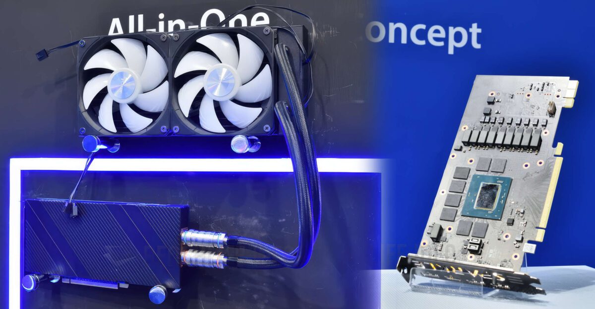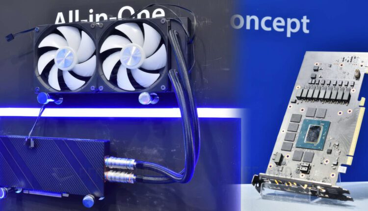 La société a présenté une conception de refroidissement hybride avec refroidissement liquide intégré, similaire à ce que ils ont mentionné dans le précédent article sur la série MSI FUZION. Une autre conception comprend un refroidisseur AIO externe, courant pour des modèles à haute TDP comme les RTX 4080/4090, mais pas typiquement pour un GPU Arc 225W.