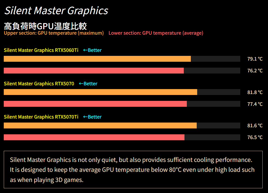RTX 5070 Ti / 5070 /5060 Ti 16GBの3機種で登場Silent Masterシリーズでは標準搭載、他のシリーズでもカスタマイズ選択が可能