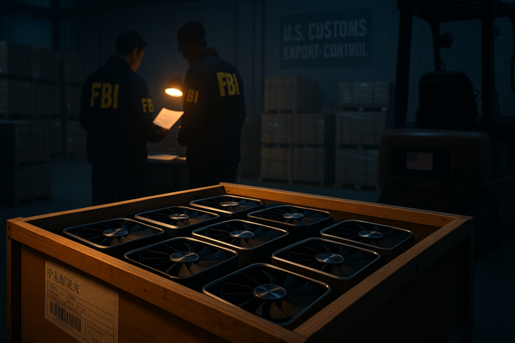 Les détails de l’affidavit se lisent comme un roman d’espionnage : une palette mal étiquetée interceptée par les douanes de Long Beach en décembre, un numéro de série renvoyant à la base de données des partenaires de NVIDIA, et une surveillance nocturne d’un fourgon de livraison. Lors de l’exécution d’un mandat de perquisition, les agents ont découvert des plateaux anti-statiques vides correspondant à environ mille GPU haut de gamme, d’une offre de 25 millions d’euros.