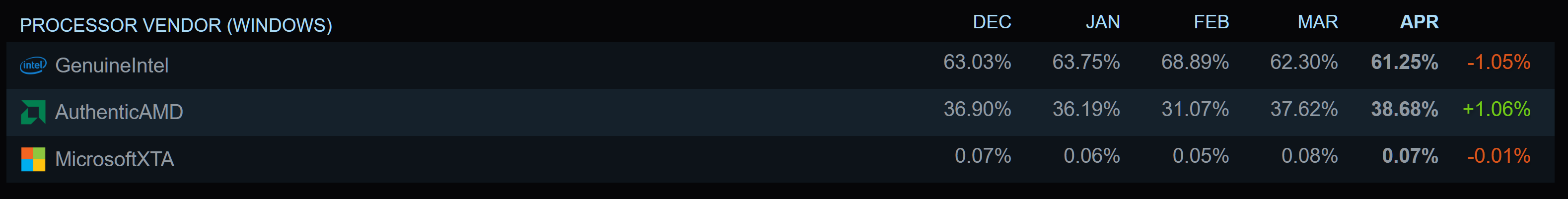 Le marché des GPU connaît un bouleversement avec un nouveau leader en avril. Le RTX 4060 PC portables GPU s’impose pour la première fois, tandis qu’AMD atteint un sommet historique dans la section CPU. Pendant ce temps, la part de Windows 10 continue de diminuer au profit de Windows 11. Les tendances de RAM évoluent également.