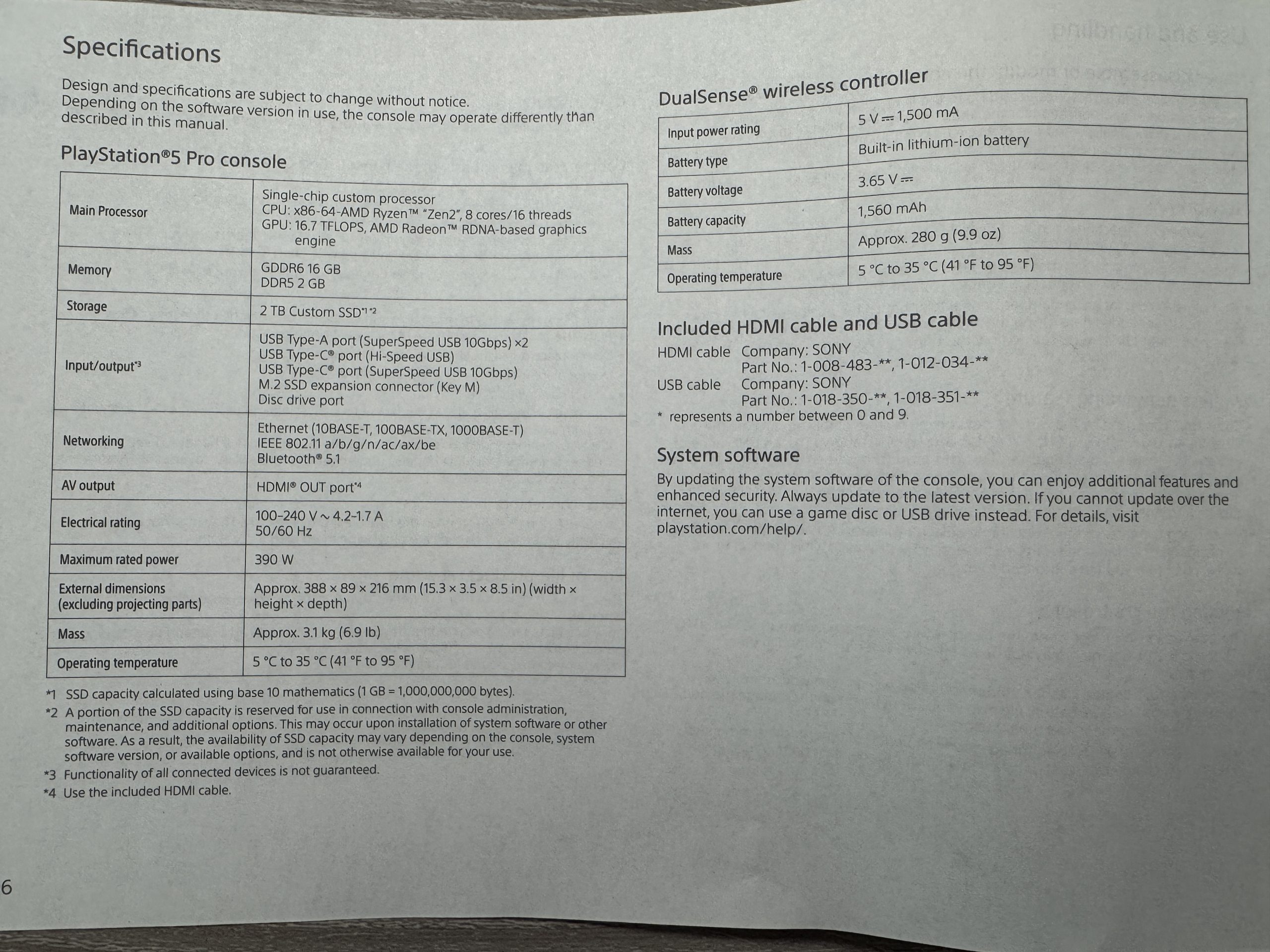 La PlayStation 5 Pro est fournie avec des guides de sécurité et de démarrage rapide. On y trouve peu de nouveautés, si ce n’est l’adaptation des documents à la configuration de la nouvelle console. Les caractéristiques du système, mentionnant notamment un processeur atteignant 16,7 TFLOPS, sont également incluses. De plus, la présence de 2 Go de RAM DDR5 plus lente est notée dans le guide de sécurité.