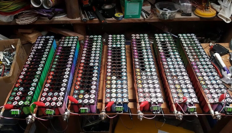 Cependant, Glubux avait l’intention d’élargir son installation en construisant un abri dédié pour loger des batteries supplémentaires et des contrôleurs de charge/inverters. Il avait déjà accumulé environ 650 batteries d’ordinateurs portables et avait commencé à les trier et à les assembler en paquets, chacun conçu pour contenir environ 100Ah en assortissant soigneusement le nombre de cellules et en utilisant du fil en cuivre pour des connexions efficaces.