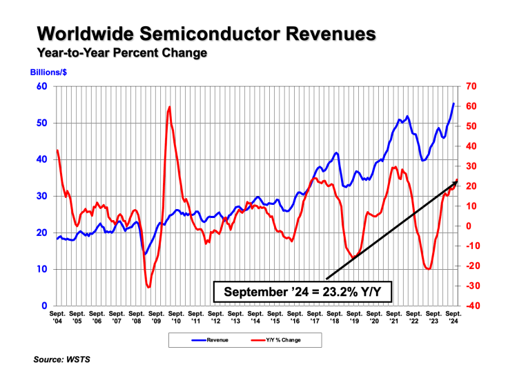 Le marché mondial des semi-conducteurs a continué de croître au troisième trimestre de 2024, les ventes ayant augmenté au rythme le plus élevé depuis 2016. Les ventes de septembre ont atteint le total mensuel le plus élevé jamais enregistré sur le marché, grâce à une hausse de 46,3% sur un an en Amérique.