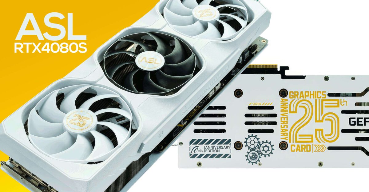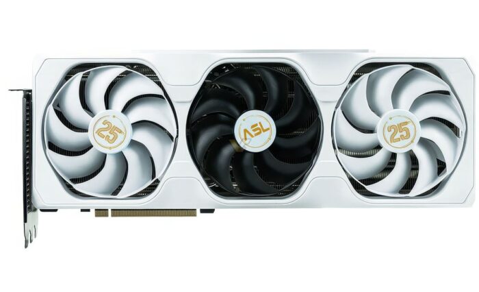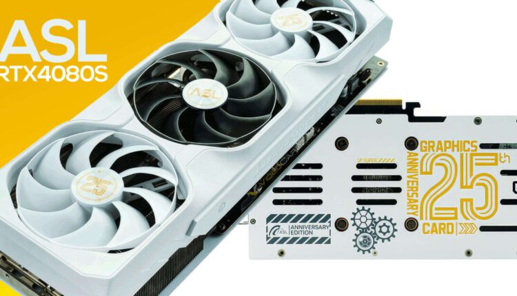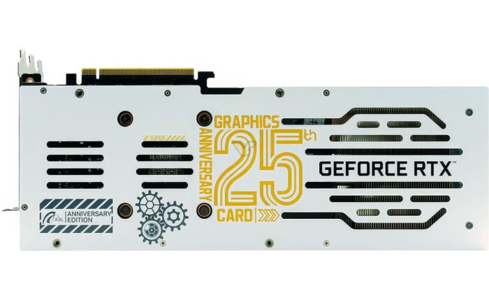 Pour marquer son 25e anniversaire, l’entreprise a lancé sa première RTX 4080 SUPER (précédemment seule la 4070 Ti SUPER était produite). Cette carte, la plus rapide de la gamme RTX 4000 d’ASL, présente un design en édition spéciale avec un schéma de couleurs blanc intégral frappant et des touches dorées pour commémorer l’anniversaire.