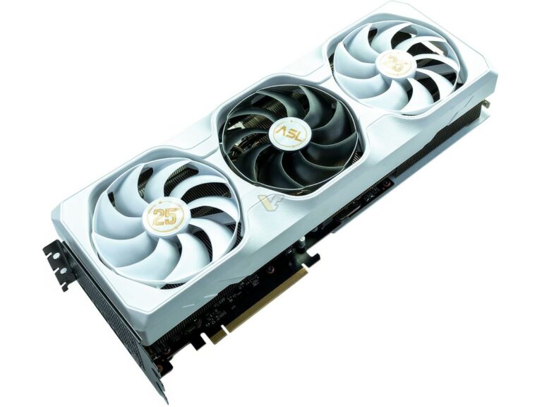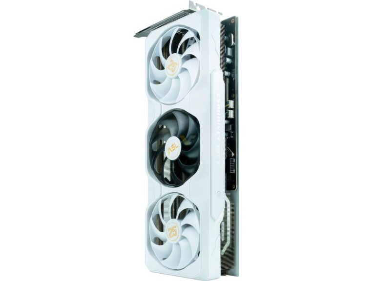 ASL lance la GeForce RTX 4080 ARES édition anniversaire 25ème. La société célèbre son 25ème anniversaire avec ce nouveau modèle, qui se distingue par son design spécial avec une couleur blanche et des accents dorés. La carte dispose de trois ventilateurs et d’un connecteur d’alimentation 16 broches, mais ne bénéficie pas d’overclocking en usine.
