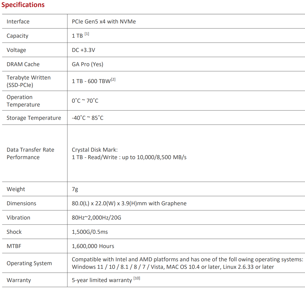 Le T-FORCE GA PRO, appartenant à la série G de TeamGroup, se distingue par son interface Gen5 x4, visant à atteindre des vitesses exceptionnelles de 10 000 MB/s. Grâce à la technologie de gestion thermique avancée intégrée, ce SSD est particulièrement adapté aux utilisateurs exigeants tels que les gamers et les professionnels.