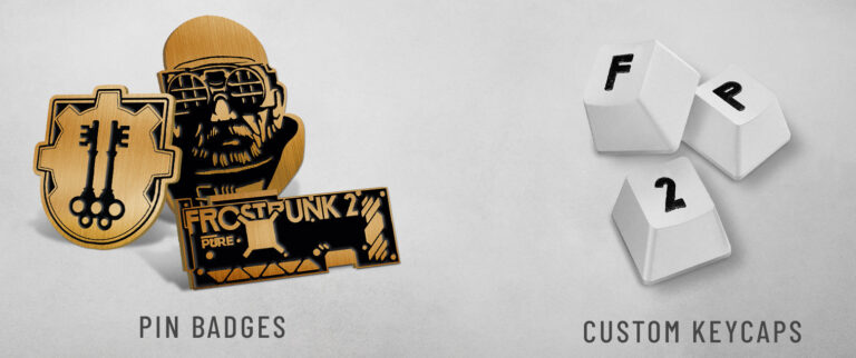 La RX 7700 XT PURE Frostpunk 2 Edition inclut l’édition Deluxe de Frostpunk 2, ce qui en fait une rareté parmi les GPU à thème de jeu qui n’incluent souvent pas le jeu (ce qui est étrange mais assez courant). De plus, Sapphire fournit trois keycaps (F P 2) et trois épingles émaillées en tant qu’objets de collection, bien que leur utilité pratique puisse être limitée.