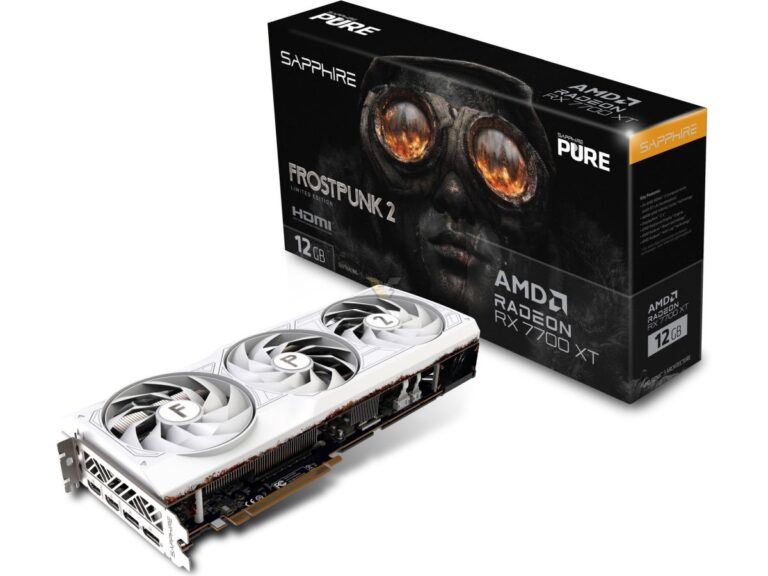 La carte graphique Sapphire RX 7700 XT PURE Frostpunk 2 Edition est désormais disponible chez certains revendeurs. Ce modèle, basé sur la version RX 7700XT PURE, est inspiré du jeu Frostpunk 2 et présente un design personnalisé avec des éléments esthétiques uniques. En plus du bundle exclusif, cette carte inclut l’édition Deluxe de Frostpunk 2, ce qui en fait un choix intéressant pour les amateurs de jeux vidéo.