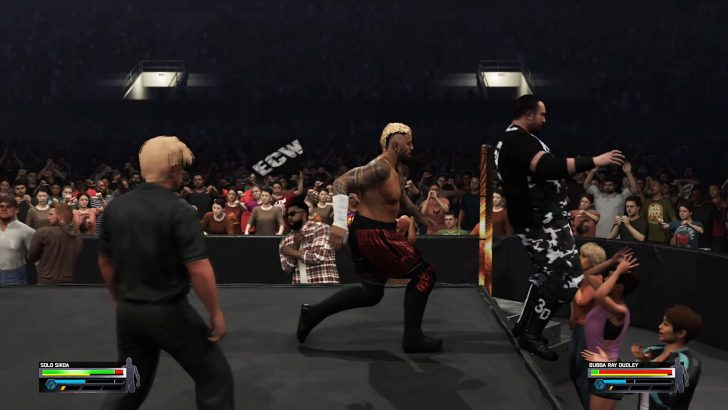 En matière de gameplay, les victoires ne peuvent être obtenues que par KO ou soumission. Ces affrontements ressemblent à des matchs sans disqualification, permettant de projeter les adversaires hors du ring sans obstruction. Bien que ce système soit agréable, il manque d’animations qui auraient pu enrichir l’expérience. La sensation brutale et MMA du Raw Underground semblait au cœur de son principe, mais ici, la représentation fait plus penser à un ancien match Lights Out.