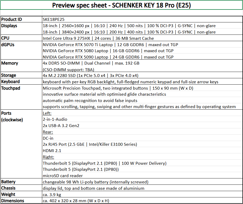 Le modèle SCHENKER KEY 18 Pro, quant à lui, est en voie de développement avec la promesse d’offrir un concentré de puissance dans un format de 18 pouces. Équipé également d’un Intel Core Ultra 9 et d’options GPU NVIDIA, il se distingue par ses nombreux emplacements pour mémoire et son large éventail de connexions, y compris le Thunderbolt 5.