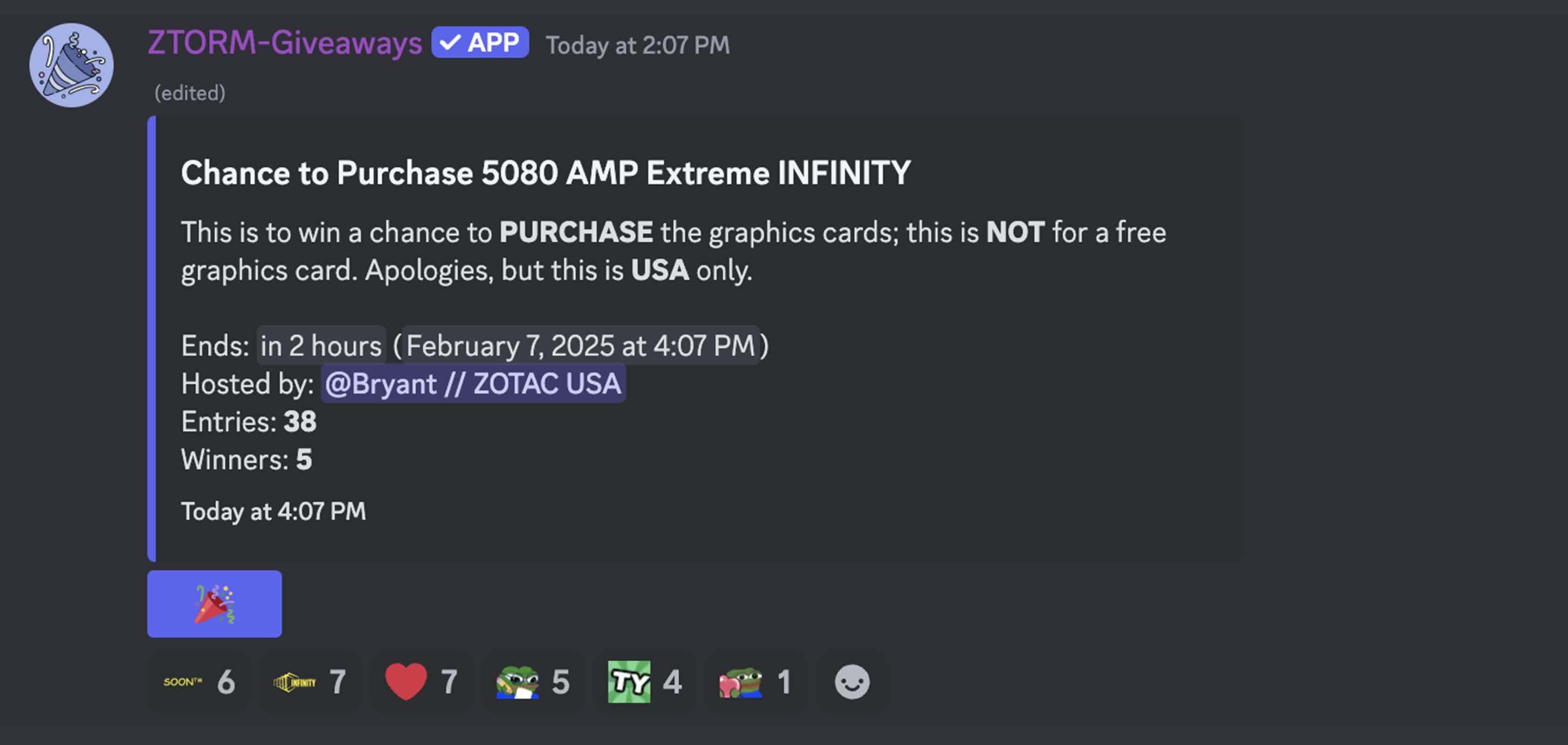 La campagne a déjà débuté, Zotac ayant créé des canaux dédiés sur son serveur Discord pour la distribution des modèles RTX 5080. Un des canaux héberge actuellement une tombola, permettant aux consommateurs intéressés de participer pour avoir une chance d’acheter la carte graphique. Les gagnants seront vérifiés en fonction de leur historique d’engagement avant de se voir accorder la possibilité d’acheter.